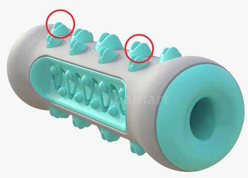 Okoli palice so nameščeni dvignjeni delci, ki pomagajo očistiti pasje zobe, odstraniti zobni kamen in okrepiti pasjo čeljust.