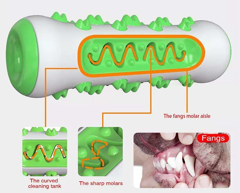 Ogrodje igrače je izdelano iz najlona in je zasnovano za čiščenje sprednjih zob psa. Za grizenje ogrodja bodo psi uporabljali sekalce. Skozi igro bodo pasji sekalci temeljito očiščeni.