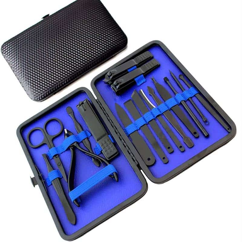 Izjemno praktičen set orodij za pedikuro, manikuro in drugo nego nohtov. Opremljen s 16 elementi, kot so škarje, klešče, rezila in narebriči. Vsa orodja so izdelana iz visokokakovostnega nerjavečega jekla, varnega v stiku s kožo. Celota je zapakirana v estetski kovček z možnostjo zaklepanja, ki omogoča enostavno prenašanje in shranjevanje kompleta.